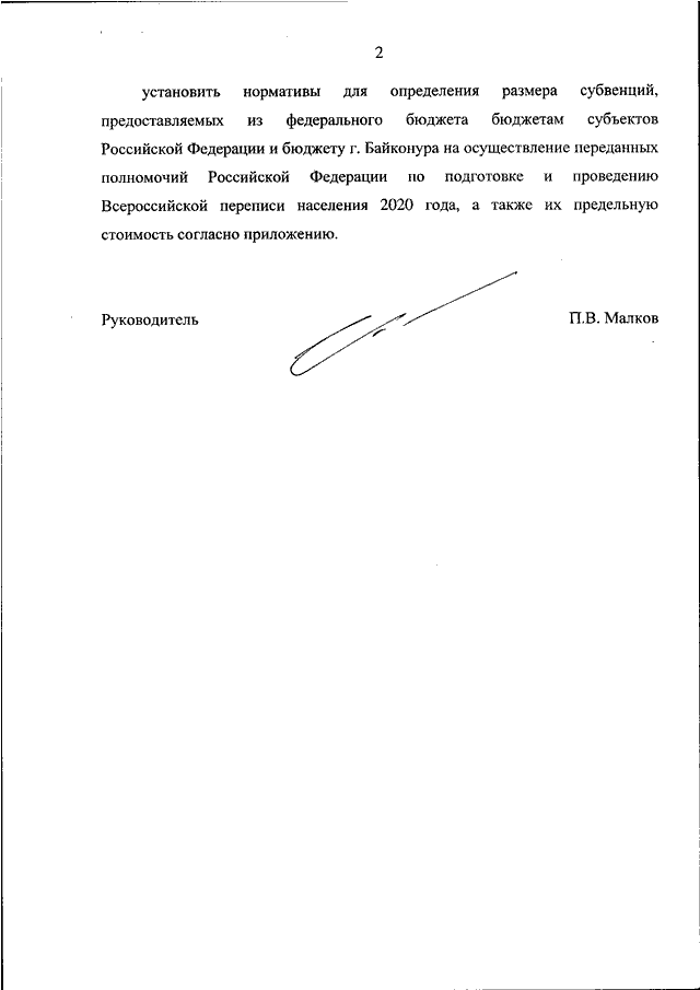 "ОБ УСТАНОВЛЕНИИ НОРМАТИВОВ ДЛЯ ОПРЕДЕЛЕНИЯ РАЗМЕРА СУБВЕНЦИЙ, ПРЕДОСТАВЛЯЕМЫХ ИЗ ФЕДЕРАЛЬНОГО БЮДЖЕТА БЮДЖЕТАМ СУБЪЕКТОВ РОССИЙСКОЙ ФЕДЕРАЦИИ И БЮДЖЕТУ Г. БАЙКОНУРА НА ОСУЩЕСТВЛЕНИЕ ПЕРЕДАННЫХ ПОЛНОМОЧИЙ РОССИЙСКОЙ ФЕДЕРАЦИИ ПО ПОДГОТОВКЕ И ПРОВЕДЕНИЮ ВСЕРОССИЙСКОЙ ПЕРЕПИСИ НАСЕЛЕНИЯ 2020 ГОДА, А ТАКЖЕ ИХ ПРЕДЕЛЬНОЙ СТОИМОСТИ"