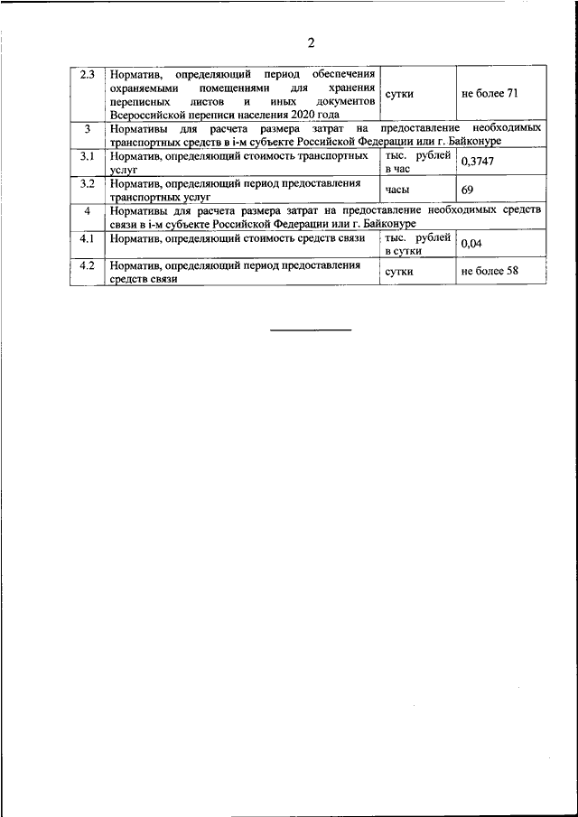 "ОБ УСТАНОВЛЕНИИ НОРМАТИВОВ ДЛЯ ОПРЕДЕЛЕНИЯ РАЗМЕРА СУБВЕНЦИЙ, ПРЕДОСТАВЛЯЕМЫХ ИЗ ФЕДЕРАЛЬНОГО БЮДЖЕТА БЮДЖЕТАМ СУБЪЕКТОВ РОССИЙСКОЙ ФЕДЕРАЦИИ И БЮДЖЕТУ Г. БАЙКОНУРА НА ОСУЩЕСТВЛЕНИЕ ПЕРЕДАННЫХ ПОЛНОМОЧИЙ РОССИЙСКОЙ ФЕДЕРАЦИИ ПО ПОДГОТОВКЕ И ПРОВЕДЕНИЮ ВСЕРОССИЙСКОЙ ПЕРЕПИСИ НАСЕЛЕНИЯ 2020 ГОДА, А ТАКЖЕ ИХ ПРЕДЕЛЬНОЙ СТОИМОСТИ"