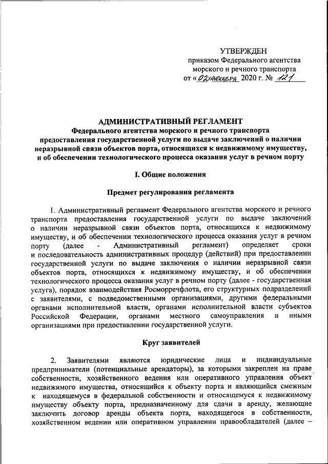 ПРИКАЗ Росморфлота от 02.12.2020 N 121