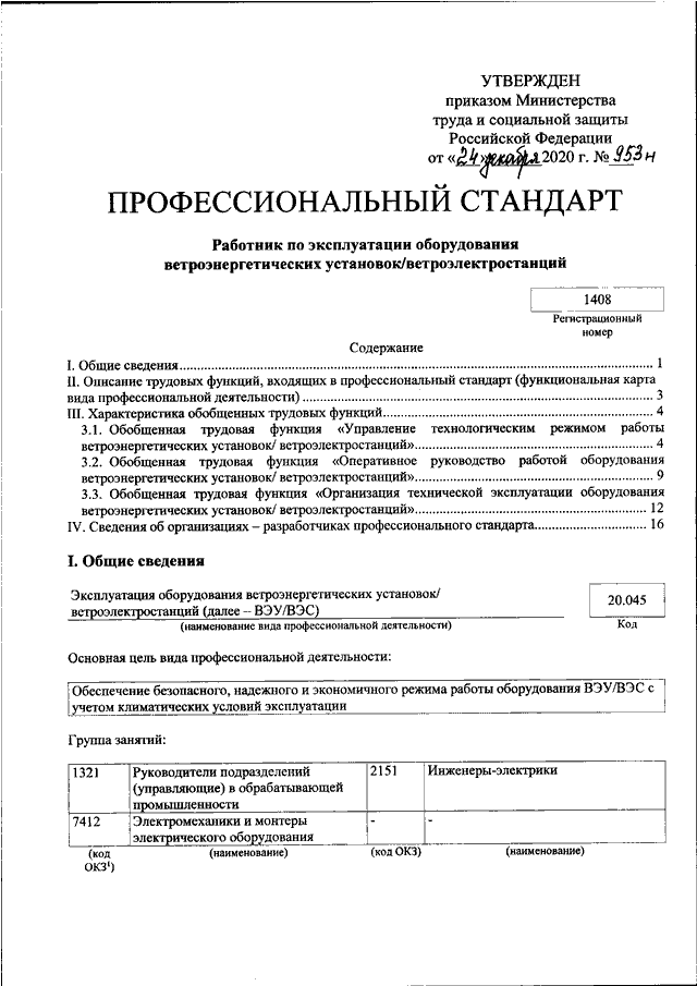 "ОБ УТВЕРЖДЕНИИ ПРОФЕССИОНАЛЬНОГО СТАНДАРТА "РАБОТНИК ПО ЭКСПЛУАТАЦИИ ОБОРУДОВАНИЯ ВЕТРОЭНЕРГЕТИЧЕСКИХ УСТАНОВОК/ВЕТРОЭЛЕКТРОСТАНЦИЙ"