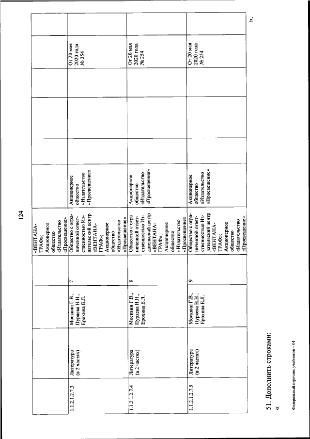 "О ВНЕСЕНИИ ИЗМЕНЕНИЙ В ФЕДЕРАЛЬНЫЙ ПЕРЕЧЕНЬ УЧЕБНИКОВ, ДОПУЩЕННЫХ К ИСПОЛЬЗОВАНИЮ ПРИ РЕАЛИЗАЦИИ ИМЕЮЩИХ ГОСУДАРСТВЕННУЮ АККРЕДИТАЦИЮ ОБРАЗОВАТЕЛЬНЫХ ПРОГРАММ НАЧАЛЬНОГО ОБЩЕГО, ОСНОВНОГО ОБЩЕГО, СРЕДНЕГО ОБЩЕГО ОБРАЗОВАНИЯ ОРГАНИЗАЦИЯМИ, ОСУЩЕСТВЛЯЮЩИМИ ОБРАЗОВАТЕЛЬНУЮ ДЕЯТЕЛЬНОСТЬ, УТВЕРЖДЕННЫЙ ПРИКАЗОМ МИНИСТЕРСТВА ПРОСВЕЩЕНИЯ РОССИЙСКОЙ ФЕДЕРАЦИИ ОТ 20 МАЯ 2020 Г. N 254"