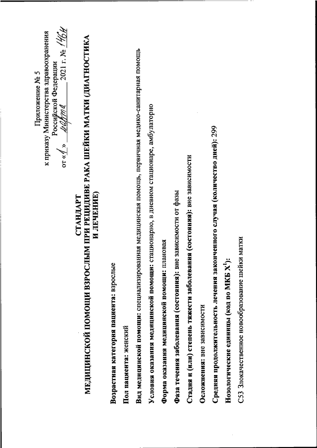 "ОБ УТВЕРЖДЕНИИ СТАНДАРТОВ МЕДИЦИНСКОЙ ПОМОЩИ ВЗРОСЛЫМ ПРИ РАКЕ ШЕЙКИ МАТКИ"