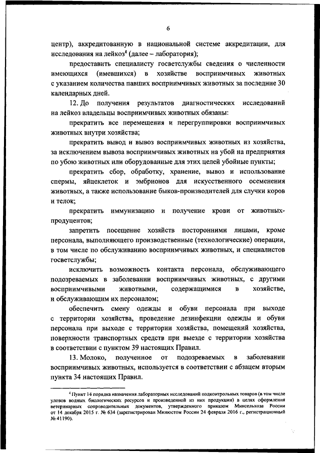 "ОБ УТВЕРЖДЕНИИ ВЕТЕРИНАРНЫХ ПРАВИЛ ОСУЩЕСТВЛЕНИЯ ПРОФИЛАКТИЧЕСКИХ, ДИАГНОСТИЧЕСКИХ, ОГРАНИЧИТЕЛЬНЫХ И ИНЫХ МЕРОПРИЯТИЙ, УСТАНОВЛЕНИЯ И ОТМЕНЫ КАРАНТИНА И ИНЫХ ОГРАНИЧЕНИЙ, НАПРАВЛЕННЫХ НА ПРЕДОТВРАЩЕНИЕ РАСПРОСТРАНЕНИЯ И ЛИКВИДАЦИЮ ОЧАГОВ ЛЕЙКОЗА КРУПНОГО РОГАТОГО СКОТА"