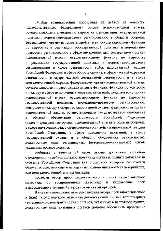 "ОБ УТВЕРЖДЕНИИ ВЕТЕРИНАРНЫХ ПРАВИЛ ОСУЩЕСТВЛЕНИЯ ПРОФИЛАКТИЧЕСКИХ, ДИАГНОСТИЧЕСКИХ, ОГРАНИЧИТЕЛЬНЫХ И ИНЫХ МЕРОПРИЯТИЙ, УСТАНОВЛЕНИЯ И ОТМЕНЫ КАРАНТИНА И ИНЫХ ОГРАНИЧЕНИЙ, НАПРАВЛЕННЫХ НА ПРЕДОТВРАЩЕНИЕ РАСПРОСТРАНЕНИЯ И ЛИКВИДАЦИЮ ОЧАГОВ ЛЕЙКОЗА КРУПНОГО РОГАТОГО СКОТА"
