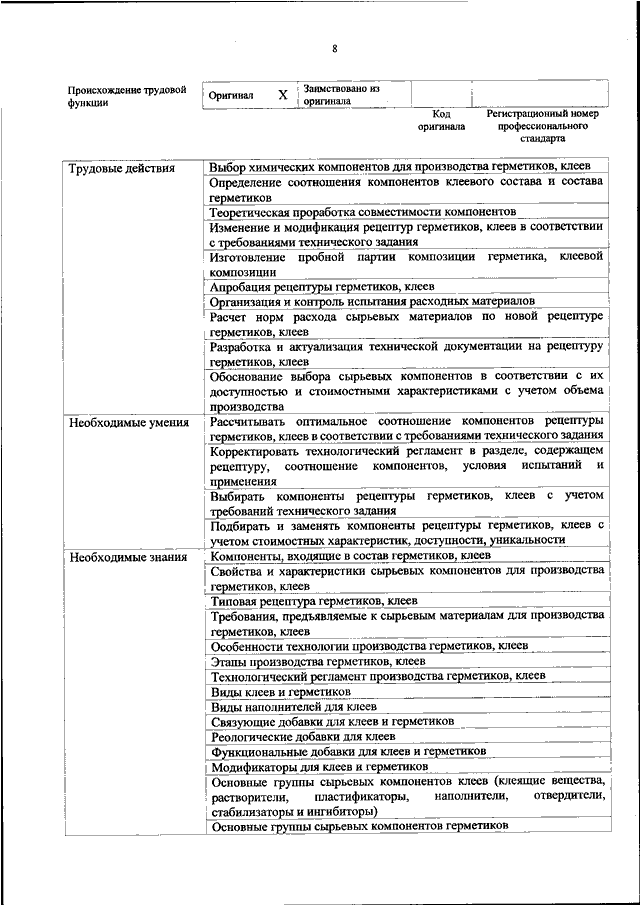 "ОБ УТВЕРЖДЕНИИ ПРОФЕССИОНАЛЬНОГО СТАНДАРТА "СПЕЦИАЛИСТ ПО ПРОИЗВОДСТВУ ГЕРМЕТИКОВ И КЛЕЕВ"