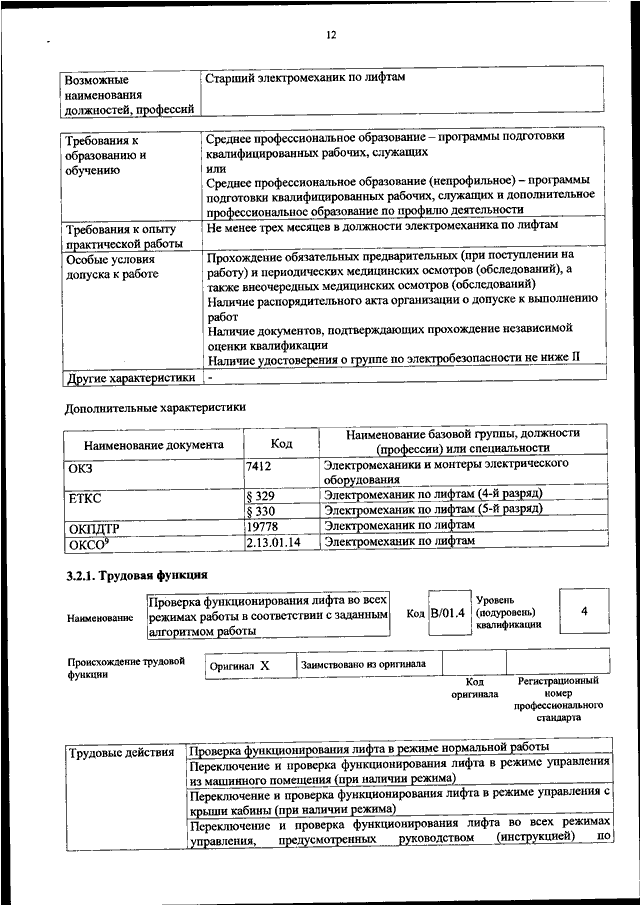 "ОБ УТВЕРЖДЕНИИ ПРОФЕССИОНАЛЬНОГО СТАНДАРТА "ЭЛЕКТРОМЕХАНИК ПО ЛИФТАМ"