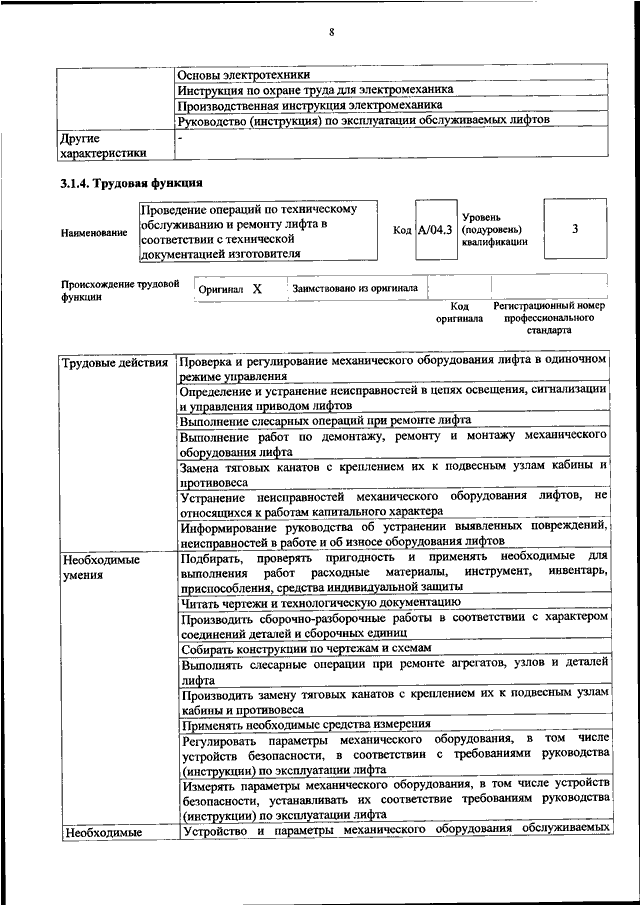 "ОБ УТВЕРЖДЕНИИ ПРОФЕССИОНАЛЬНОГО СТАНДАРТА "ЭЛЕКТРОМЕХАНИК ПО ЛИФТАМ"