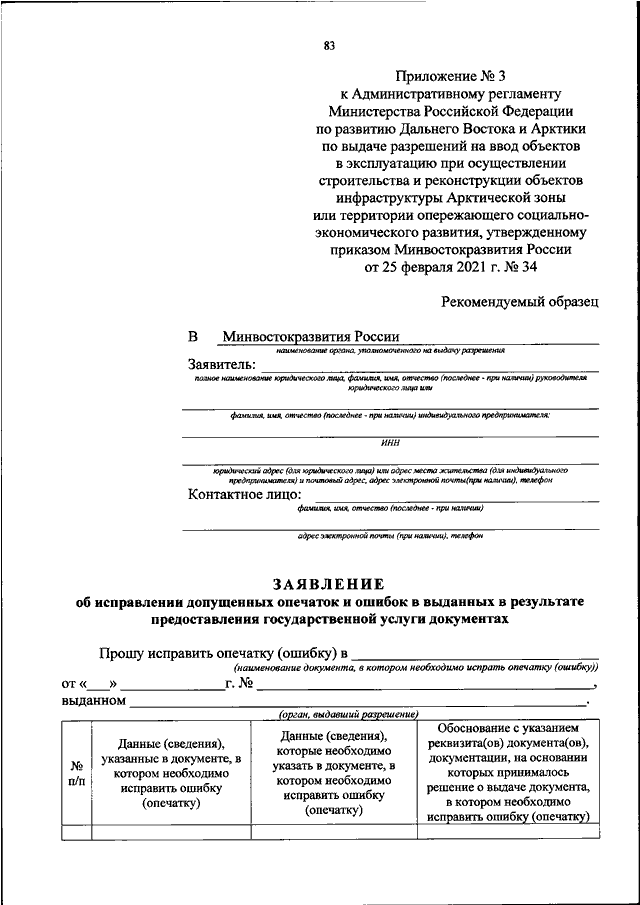 ПРИКАЗ Минвостокразвития РФ от 25.02.2021 N 34