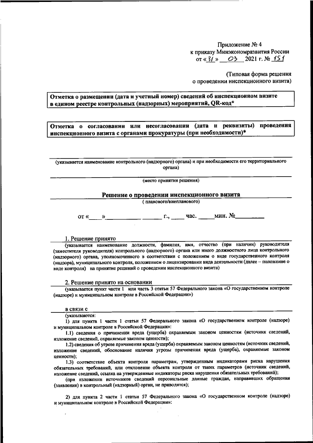 ПРИКАЗ Минэкономразвития РФ от 31.03.2021 N 151