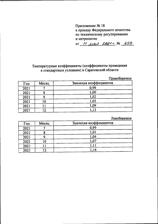 "ОБ УТВЕРЖДЕНИИ ТЕМПЕРАТУРНЫХ КОЭФФИЦИЕНТОВ (КОЭФФИЦИЕНТОВ ПРИВЕДЕНИЯ К СТАНДАРТНЫМ УСЛОВИЯМ) НА ВТОРОЕ ПОЛУГОДИЕ 2021 ГОДА"