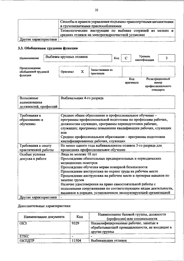 "ОБ УТВЕРЖДЕНИИ ПРОФЕССИОНАЛЬНОГО СТАНДАРТА "ВЫБИВАЛЬЩИК ОТЛИВОК"