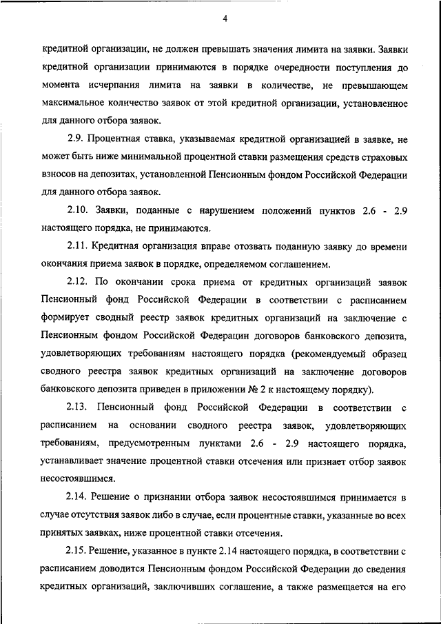 "ОБ УТВЕРЖДЕНИИ ПОРЯДКА ОТБОРА ЗАЯВОК КРЕДИТНЫХ ОРГАНИЗАЦИЙ НА ЗАКЛЮЧЕНИЕ С ПЕНСИОННЫМ ФОНДОМ РОССИЙСКОЙ ФЕДЕРАЦИИ ДОГОВОРОВ БАНКОВСКОГО ДЕПОЗИТА И ПОРЯДКА ЗАКЛЮЧЕНИЯ ТАКИХ ДОГОВОРОВ"