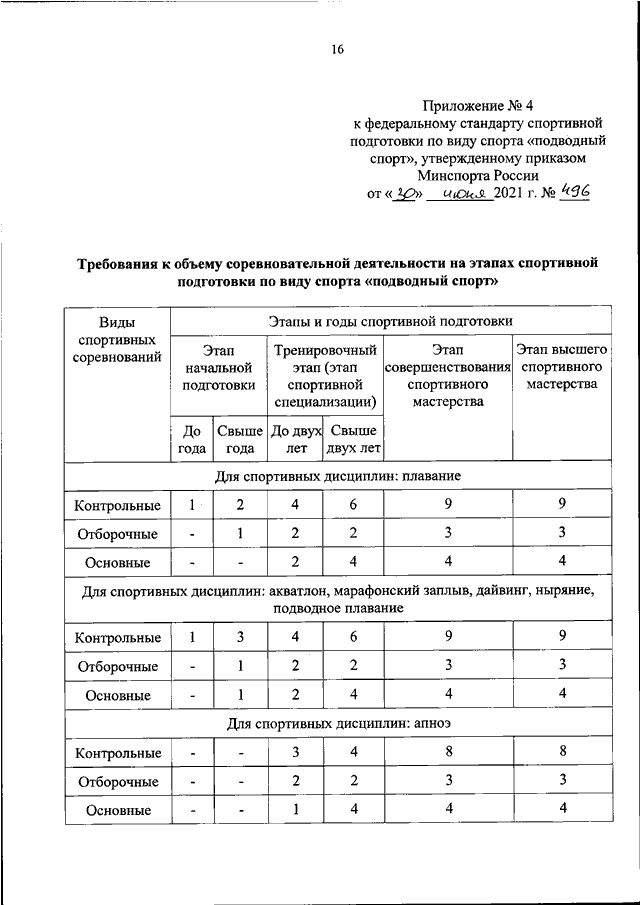 ПРИКАЗ Минспорта РФ от 30.06.2021 N 496