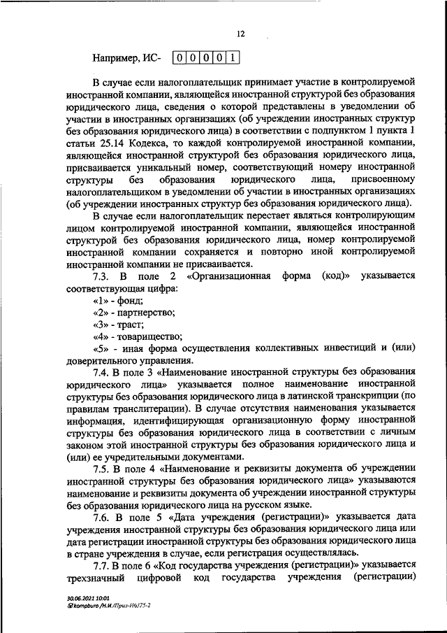 "ОБ УТВЕРЖДЕНИИ ФОРМЫ, ПОРЯДКА ЗАПОЛНЕНИЯ ФОРМЫ И ФОРМАТА ПРЕДСТАВЛЕНИЯ УВЕДОМЛЕНИЯ О КОНТРОЛИРУЕМЫХ ИНОСТРАННЫХ КОМПАНИЯХ В ЭЛЕКТРОННОЙ ФОРМЕ"