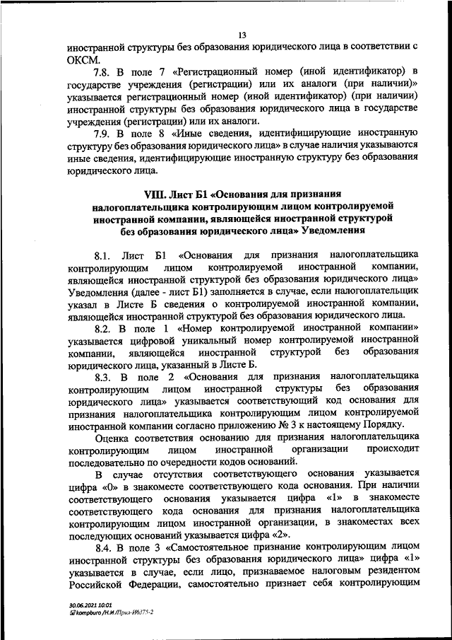 "ОБ УТВЕРЖДЕНИИ ФОРМЫ, ПОРЯДКА ЗАПОЛНЕНИЯ ФОРМЫ И ФОРМАТА ПРЕДСТАВЛЕНИЯ УВЕДОМЛЕНИЯ О КОНТРОЛИРУЕМЫХ ИНОСТРАННЫХ КОМПАНИЯХ В ЭЛЕКТРОННОЙ ФОРМЕ"