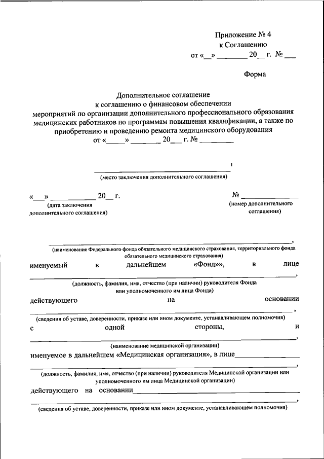 "ОБ УТВЕРЖДЕНИИ ПОРЯДКА ЗАКЛЮЧЕНИЯ И ТИПОВОЙ ФОРМЫ СОГЛАШЕНИЯ О ФИНАНСОВОМ ОБЕСПЕЧЕНИИ МЕРОПРИЯТИЙ ПО ОРГАНИЗАЦИИ ДОПОЛНИТЕЛЬНОГО ПРОФЕССИОНАЛЬНОГО ОБРАЗОВАНИЯ МЕДИЦИНСКИХ РАБОТНИКОВ ПО ПРОГРАММАМ ПОВЫШЕНИЯ КВАЛИФИКАЦИИ, А ТАКЖЕ ПО ПРИОБРЕТЕНИЮ И ПРОВЕДЕНИЮ РЕМОНТА МЕДИЦИНСКОГО ОБОРУДОВАНИЯ"