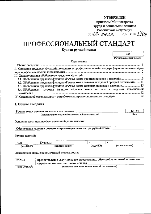 "ОБ УТВЕРЖДЕНИИ ПРОФЕССИОНАЛЬНОГО СТАНДАРТА "КУЗНЕЦ РУЧНОЙ КОВКИ"