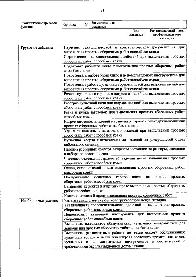"ОБ УТВЕРЖДЕНИИ ПРОФЕССИОНАЛЬНОГО СТАНДАРТА "КУЗНЕЦ РУЧНОЙ КОВКИ"