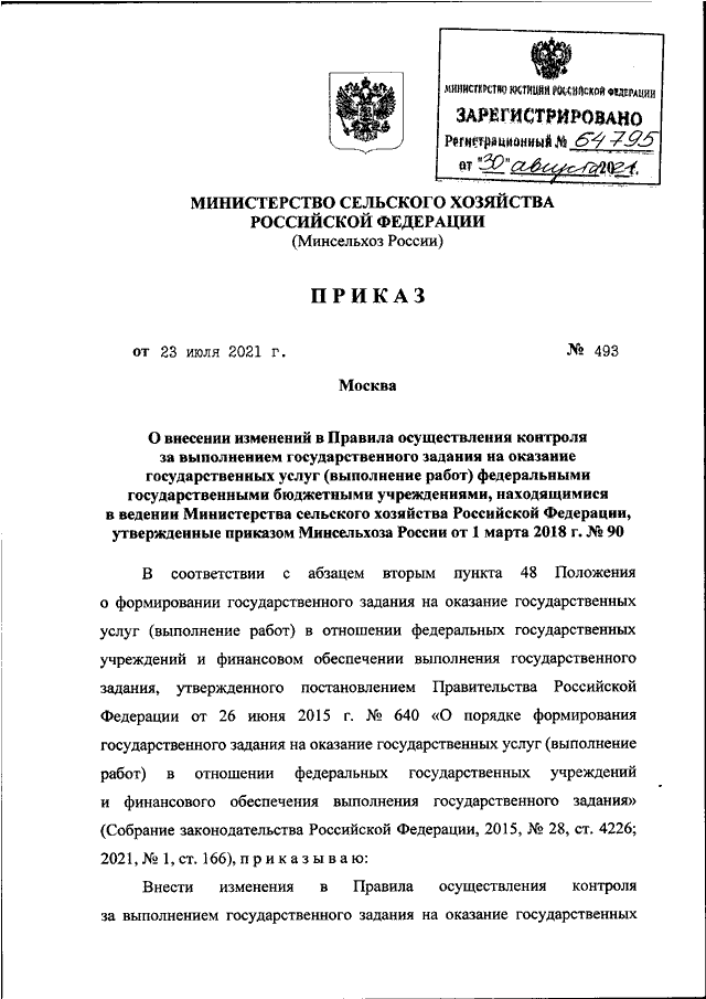 ПРИКАЗ Минсельхоза РФ от 23.07.2021 N 493