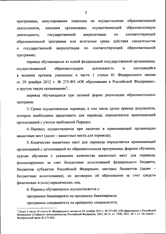 "ОБ УТВЕРЖДЕНИИ ПОРЯДКА ПЕРЕВОДА ОБУЧАЮЩЕГОСЯ В ДРУГУЮ ОБРАЗОВАТЕЛЬНУЮ ОРГАНИЗАЦИЮ, РЕАЛИЗУЮЩУЮ ОБРАЗОВАТЕЛЬНУЮ ПРОГРАММУ ВЫСШЕГО ОБРАЗОВАНИЯ СООТВЕТСТВУЮЩЕГО УРОВНЯ"