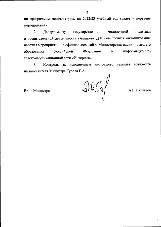 "ОБ УТВЕРЖДЕНИИ ПЕРЕЧНЯ МЕРОПРИЯТИЙ ДЛЯ ПРЕДОСТАВЛЕНИЯ ГРАНТОВ ЛИЦАМ, ПОСТУПИВШИМ НА ОБУЧЕНИЕ В ОБРАЗОВАТЕЛЬНЫЕ ОРГАНИЗАЦИИ ВЫСШЕГО ОБРАЗОВАНИЯ, НАУЧНЫЕ ОРГАНИЗАЦИИ ПО ПРОГРАММАМ МАГИСТРАТУРЫ, НА 2022/23 УЧЕБНЫЙ ГОД"