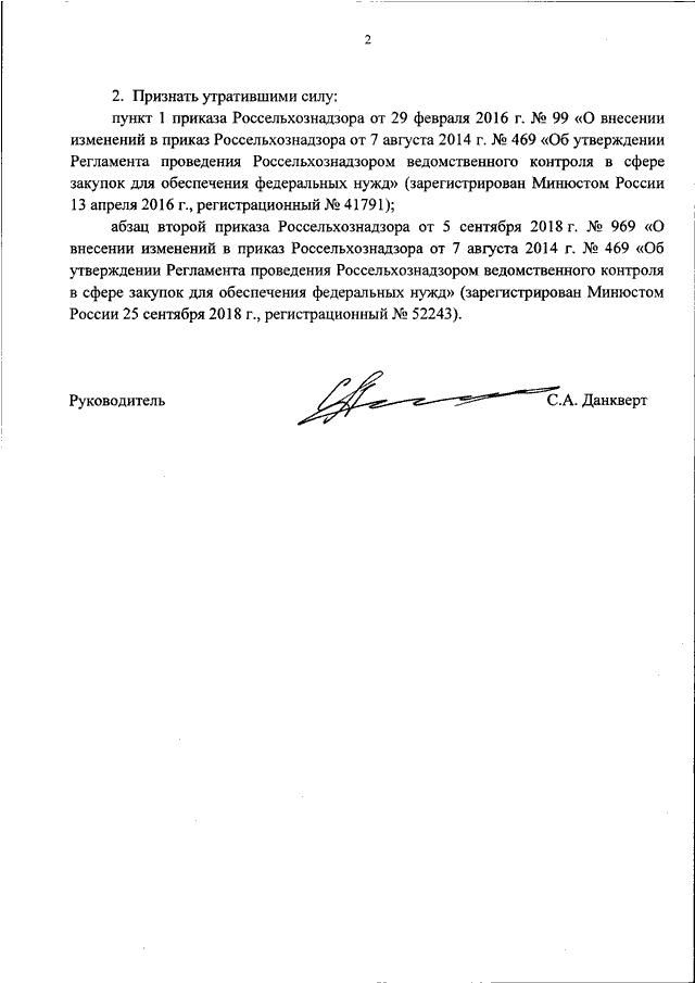 РОССЕЛЬХОЗНАДЗОРА ОТ 7 АВГУСТА 2014 Г. N 469, ОТ 29 ФЕВРАЛЯ 2016