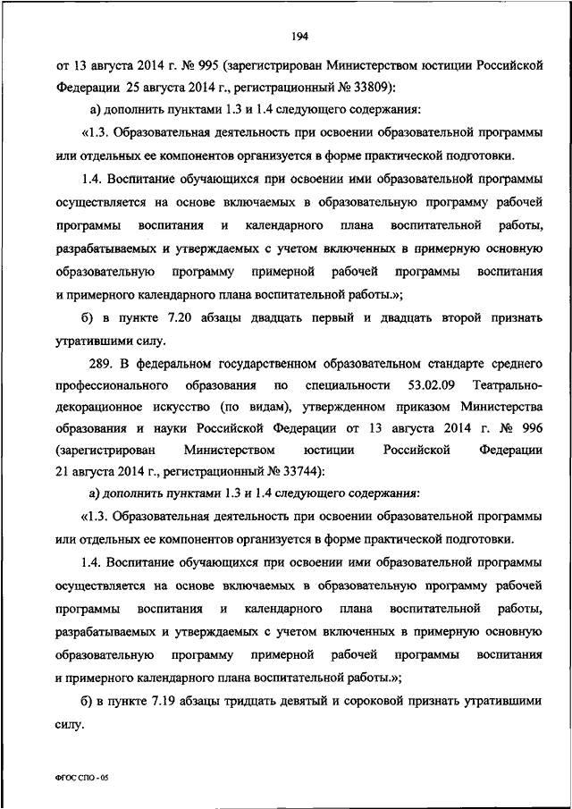 "О ВНЕСЕНИИ ИЗМЕНЕНИЙ В ФЕДЕРАЛЬНЫЕ ГОСУДАРСТВЕННЫЕ ОБРАЗОВАТЕЛЬНЫЕ СТАНДАРТЫ СРЕДНЕГО ПРОФЕССИОНАЛЬНОГО ОБРАЗОВАНИЯ"
