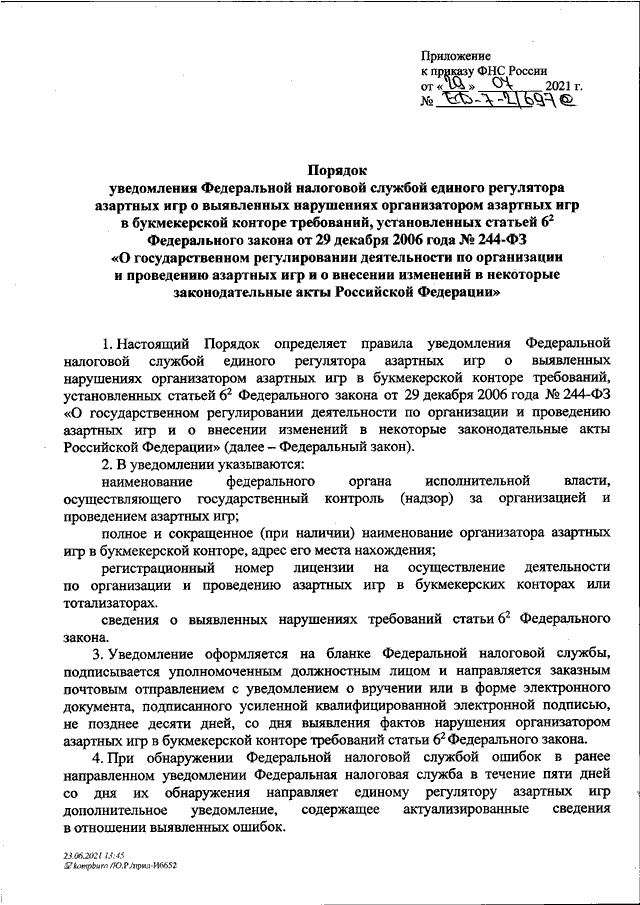 ПРИКАЗ ФНС РФ от 29.07.2021 N ЕД-7-2/697@