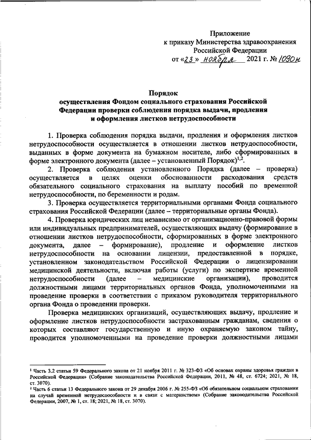 ПРИКАЗ Минздрава РФ от 23.11.2021 N 1090н