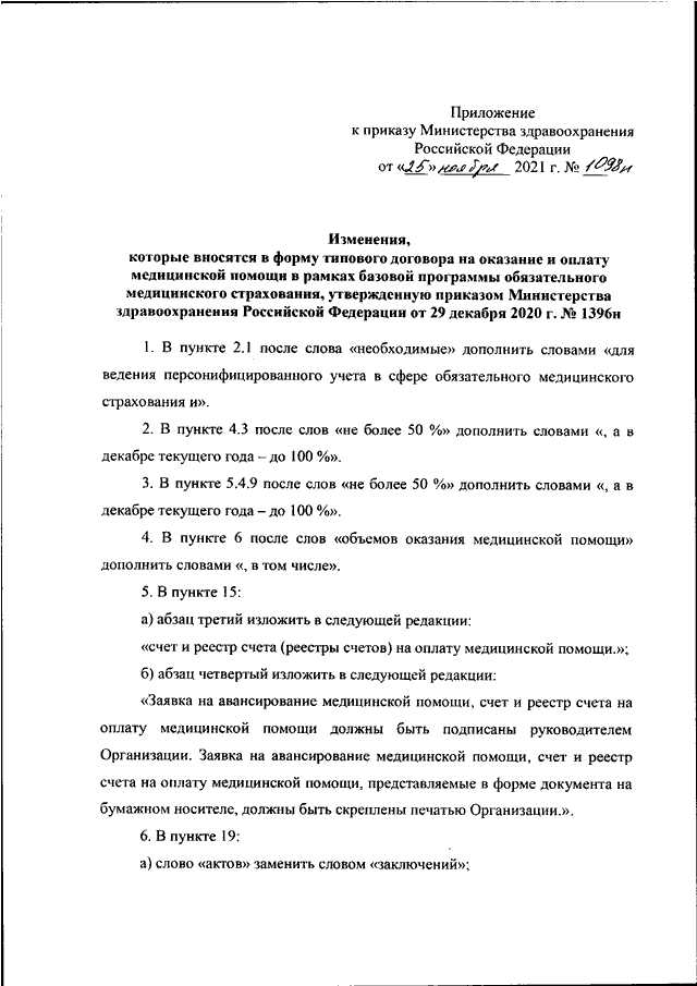 ПРИКАЗ Минздрава РФ от 25.11.2021 N 1098н