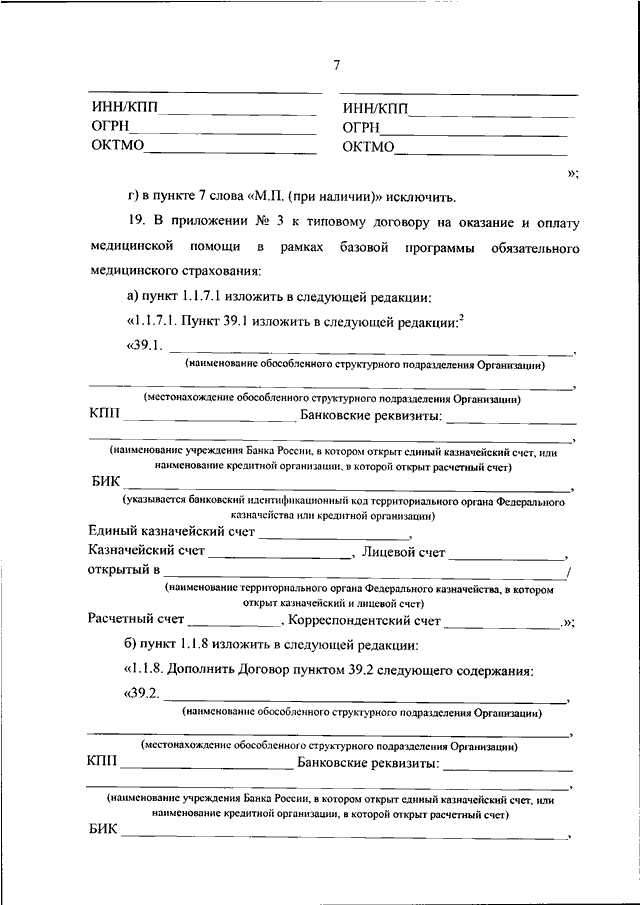 "О ВНЕСЕНИИ ИЗМЕНЕНИЙ В ФОРМУ ТИПОВОГО ДОГОВОРА НА ОКАЗАНИЕ И ОПЛАТУ МЕДИЦИНСКОЙ ПОМОЩИ В РАМКАХ БАЗОВОЙ ПРОГРАММЫ ОБЯЗАТЕЛЬНОГО МЕДИЦИНСКОГО СТРАХОВАНИЯ, УТВЕРЖДЕННУЮ ПРИКАЗОМ МИНИСТЕРСТВА ЗДРАВООХРАНЕНИЯ РОССИЙСКОЙ ФЕДЕРАЦИИ ОТ 29 ДЕКАБРЯ 2020 Г. N 31396Н"