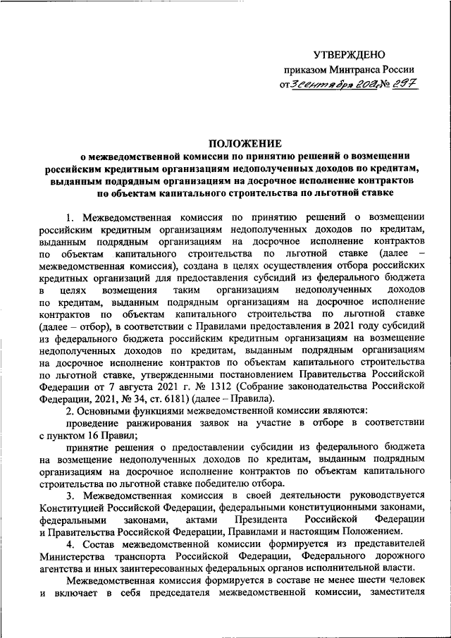 ПРИКАЗ Минтранса РФ от 03.09.2021 N 297