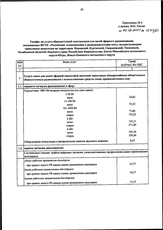 "ОБ УТВЕРЖДЕНИИ ТАРИФОВ НА УСЛУГИ ОБЩЕДОСТУПНОЙ ЭЛЕКТРОСВЯЗИ ДЛЯ ЦЕЛЕЙ ЭФИРНОГО ТЕЛЕВИЗИОННОГО ВЕЩАНИЯ И (ИЛИ) РАДИОВЕЩАНИЯ, ОКАЗЫВАЕМЫЕ ФГУП "РОССИЙСКАЯ ТЕЛЕВИЗИОННАЯ И РАДИОВЕЩАТЕЛЬНАЯ СЕТЬ", ОСУЩЕСТВЛЯЮЩИМ ТРАНСЛЯЦИЮ ВЕЩАТЕЛЯМ"