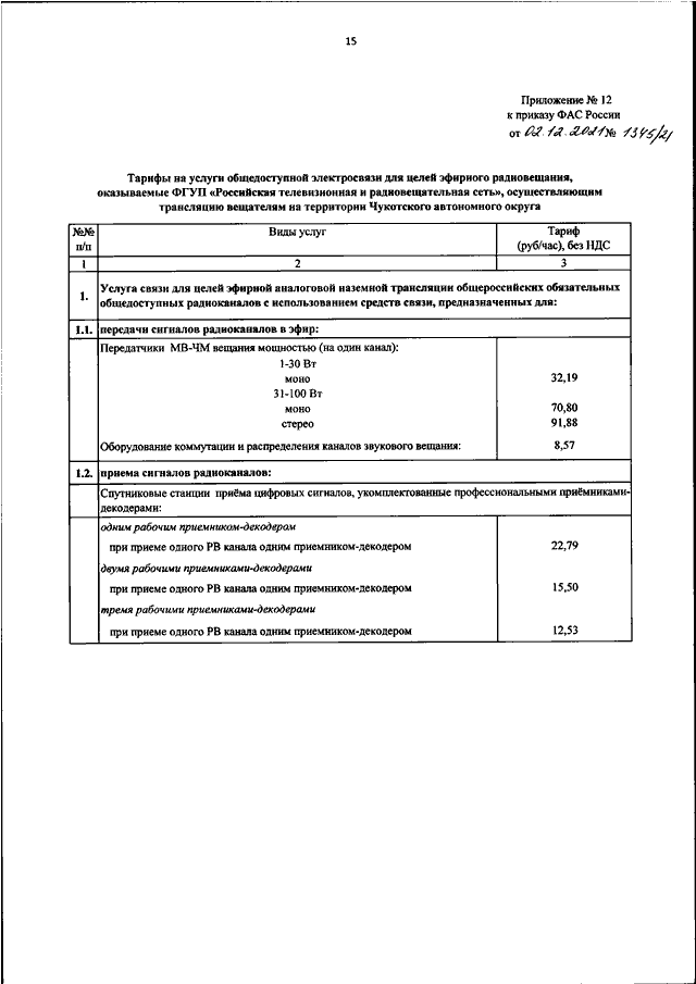 "ОБ УТВЕРЖДЕНИИ ТАРИФОВ НА УСЛУГИ ОБЩЕДОСТУПНОЙ ЭЛЕКТРОСВЯЗИ ДЛЯ ЦЕЛЕЙ ЭФИРНОГО ТЕЛЕВИЗИОННОГО ВЕЩАНИЯ И (ИЛИ) РАДИОВЕЩАНИЯ, ОКАЗЫВАЕМЫЕ ФГУП "РОССИЙСКАЯ ТЕЛЕВИЗИОННАЯ И РАДИОВЕЩАТЕЛЬНАЯ СЕТЬ", ОСУЩЕСТВЛЯЮЩИМ ТРАНСЛЯЦИЮ ВЕЩАТЕЛЯМ"