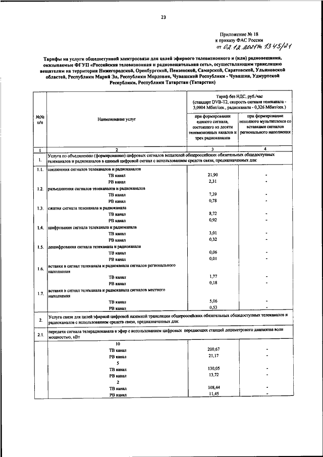 "ОБ УТВЕРЖДЕНИИ ТАРИФОВ НА УСЛУГИ ОБЩЕДОСТУПНОЙ ЭЛЕКТРОСВЯЗИ ДЛЯ ЦЕЛЕЙ ЭФИРНОГО ТЕЛЕВИЗИОННОГО ВЕЩАНИЯ И (ИЛИ) РАДИОВЕЩАНИЯ, ОКАЗЫВАЕМЫЕ ФГУП "РОССИЙСКАЯ ТЕЛЕВИЗИОННАЯ И РАДИОВЕЩАТЕЛЬНАЯ СЕТЬ", ОСУЩЕСТВЛЯЮЩИМ ТРАНСЛЯЦИЮ ВЕЩАТЕЛЯМ"