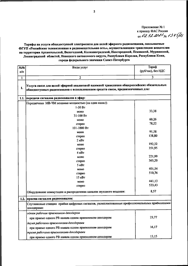 "ОБ УТВЕРЖДЕНИИ ТАРИФОВ НА УСЛУГИ ОБЩЕДОСТУПНОЙ ЭЛЕКТРОСВЯЗИ ДЛЯ ЦЕЛЕЙ ЭФИРНОГО ТЕЛЕВИЗИОННОГО ВЕЩАНИЯ И (ИЛИ) РАДИОВЕЩАНИЯ, ОКАЗЫВАЕМЫЕ ФГУП "РОССИЙСКАЯ ТЕЛЕВИЗИОННАЯ И РАДИОВЕЩАТЕЛЬНАЯ СЕТЬ", ОСУЩЕСТВЛЯЮЩИМ ТРАНСЛЯЦИЮ ВЕЩАТЕЛЯМ"