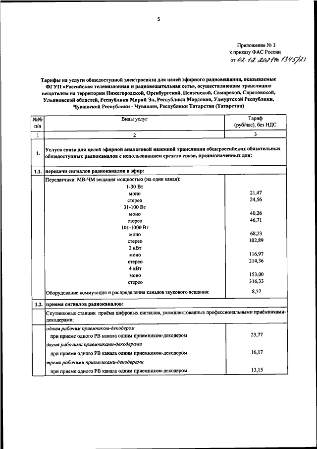 "ОБ УТВЕРЖДЕНИИ ТАРИФОВ НА УСЛУГИ ОБЩЕДОСТУПНОЙ ЭЛЕКТРОСВЯЗИ ДЛЯ ЦЕЛЕЙ ЭФИРНОГО ТЕЛЕВИЗИОННОГО ВЕЩАНИЯ И (ИЛИ) РАДИОВЕЩАНИЯ, ОКАЗЫВАЕМЫЕ ФГУП "РОССИЙСКАЯ ТЕЛЕВИЗИОННАЯ И РАДИОВЕЩАТЕЛЬНАЯ СЕТЬ", ОСУЩЕСТВЛЯЮЩИМ ТРАНСЛЯЦИЮ ВЕЩАТЕЛЯМ"