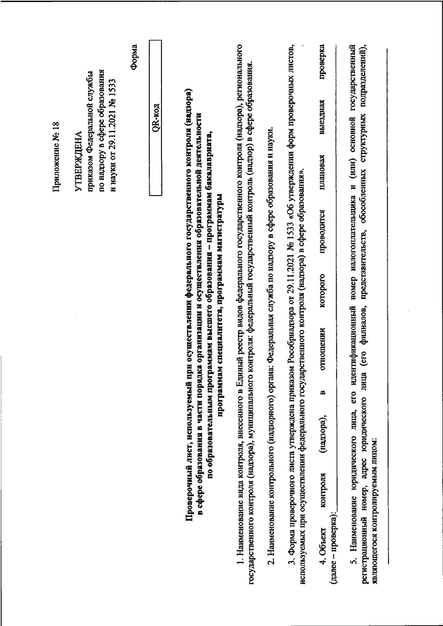ПРИКАЗ Рособрнадзора от 29.11.2021 N 1533