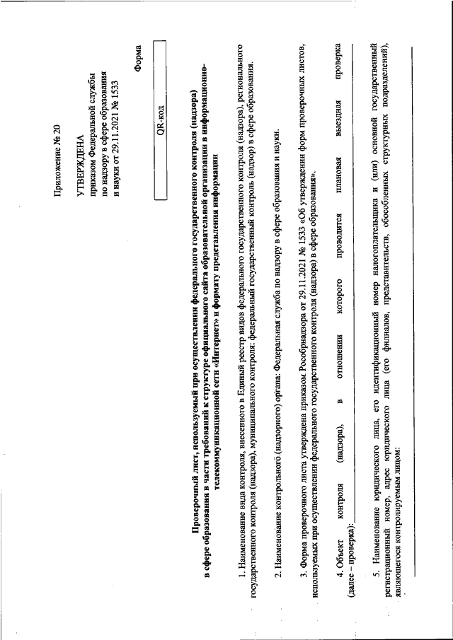 ПРИКАЗ Рособрнадзора от 29.11.2021 N 1533