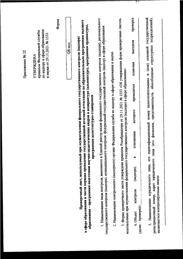 ПРИКАЗ Рособрнадзора от 29.11.2021 N 1533