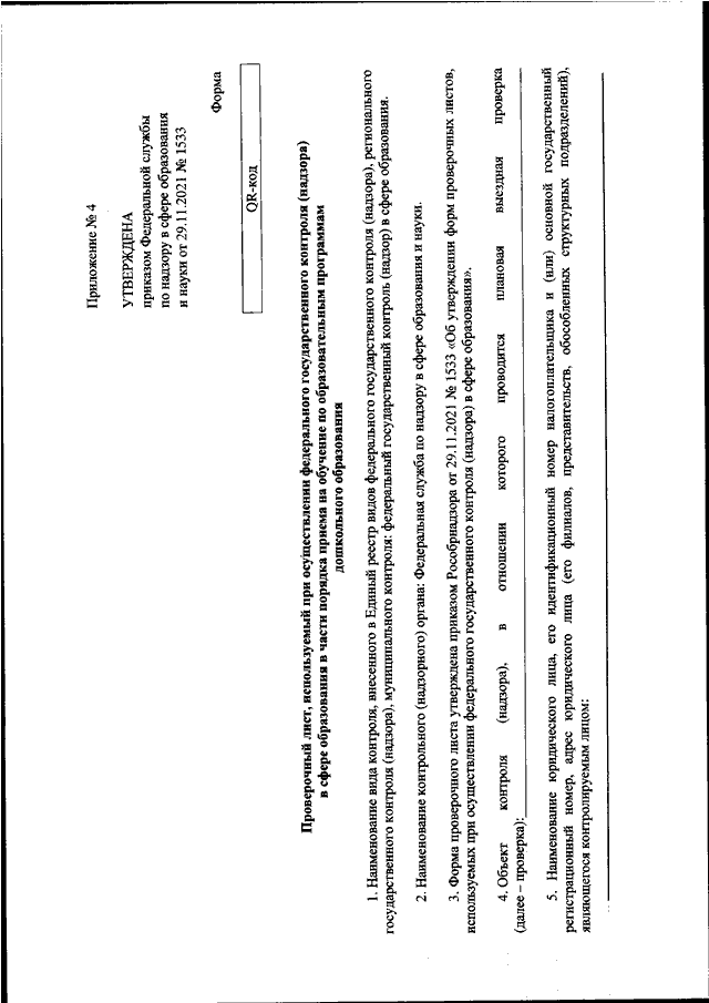 ПРИКАЗ Рособрнадзора от 29.11.2021 N 1533