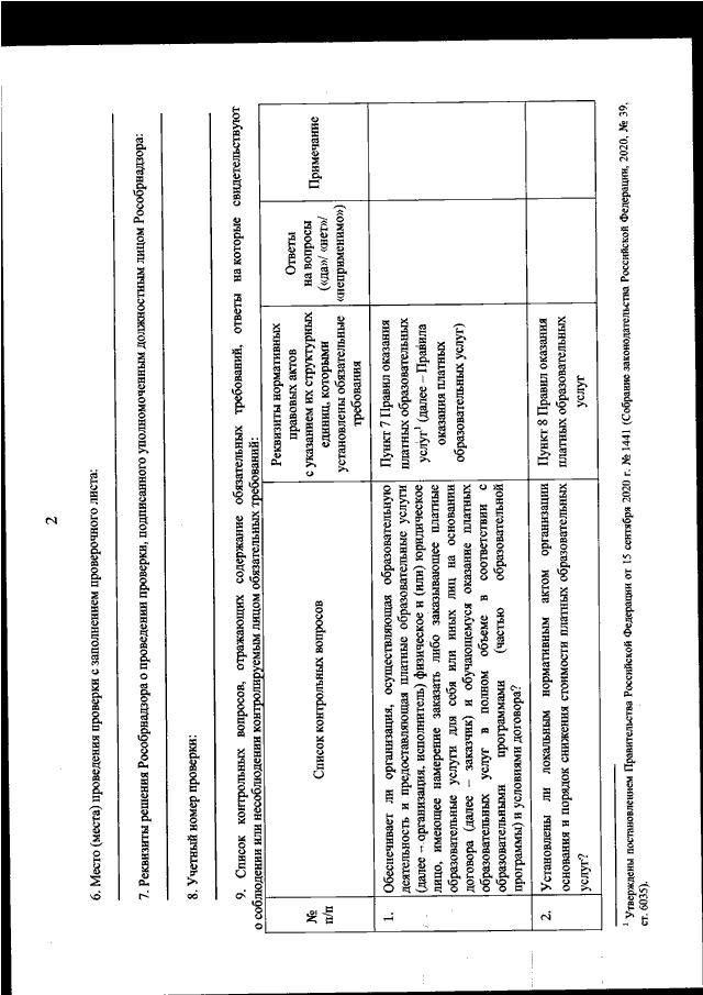 "ОБ УТВЕРЖДЕНИИ ФОРМ ПРОВЕРОЧНЫХ ЛИСТОВ, ИСПОЛЬЗУЕМЫХ ПРИ ОСУЩЕСТВЛЕНИИ ФЕДЕРАЛЬНОГО ГОСУДАРСТВЕННОГО КОНТРОЛЯ (НАДЗОРА) В СФЕРЕ ОБРАЗОВАНИЯ"