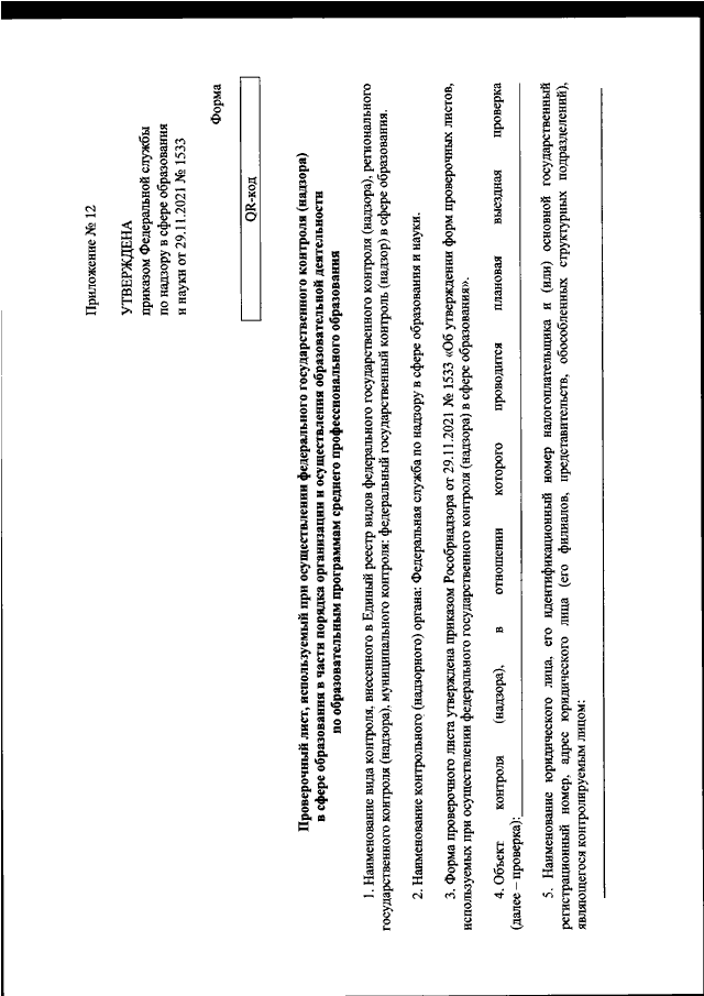 ПРИКАЗ Рособрнадзора от 29.11.2021 N 1533