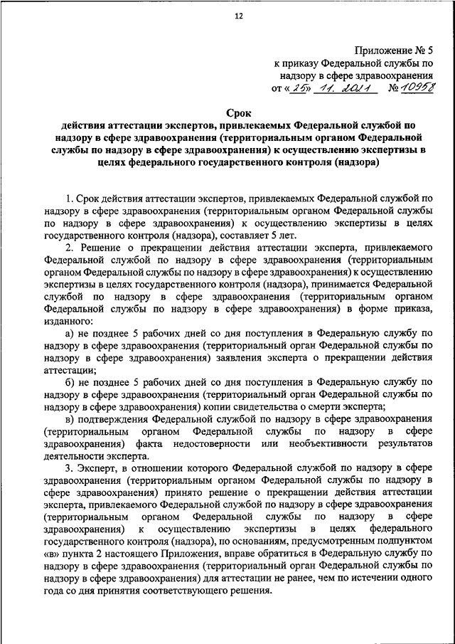 ПРИКАЗ Росздравнадзора от 25.11.2021 N 10958
