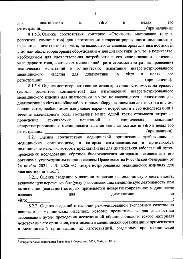 "ОБ УТВЕРЖДЕНИИ ФОРМЫ ЗАКЛЮЧЕНИЯ ПО РЕЗУЛЬТАТАМ ЭКСПЕРТИЗЫ КАЧЕСТВА, БЕЗОПАСНОСТИ И ЭФФЕКТИВНОСТИ НЕЗАРЕГИСТРИРОВАННОГО МЕДИЦИНСКОГО ИЗДЕЛИЯ ДЛЯ ДИАГНОСТИКИ IN VITRO"