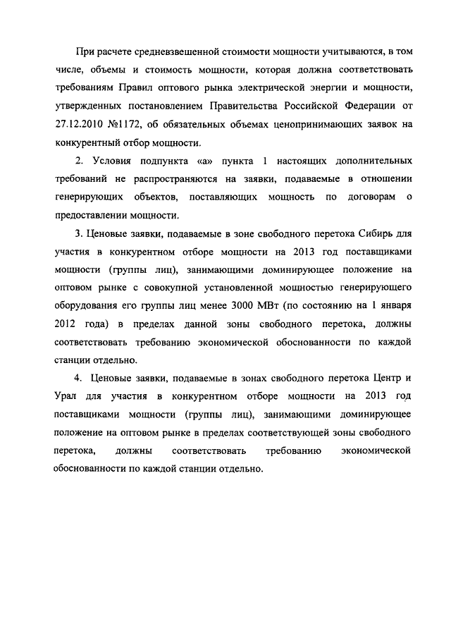 "О ВВЕДЕНИИ ДОПОЛНИТЕЛЬНЫХ ТРЕБОВАНИЙ К ЦЕНОВЫМ ЗАЯВКАМ, ПОДАВАЕМЫМ ДЛЯ УЧАСТИЯ В КОНКУРЕНТНОМ ОТБОРЕ МОЩНОСТИ НА 2013 ГОД ПОСТАВЩИКАМИ МОЩНОСТИ (ГРУППЫ ЛИЦ), ЗАНИМАЮЩИМИ ДОМИНИРУЮЩЕЕ ПОЛОЖЕНИЕ НА ОПТОВОМ РЫНКЕ В ПРЕДЕЛАХ ОДНОЙ ЗОНЫ СВОБОДНОГО ПЕРЕТОКА"