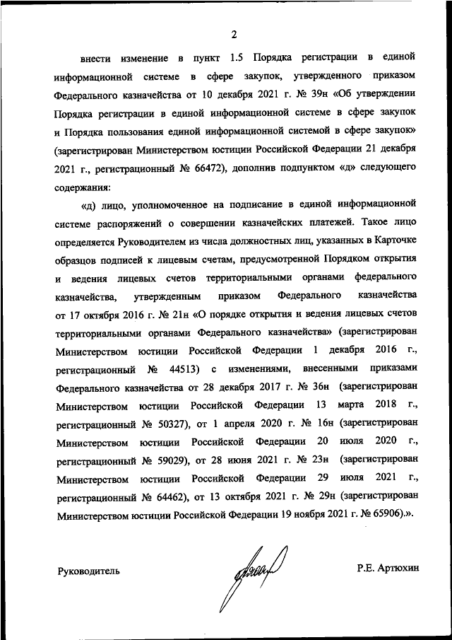 ФЕДЕРАЛЬНОГО КАЗНАЧЕЙСТВА ОТ 10 ДЕКАБРЯ 2021 Г. N 39Н"