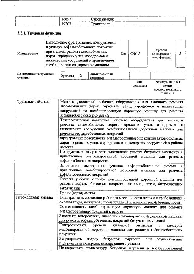 "ОБ УТВЕРЖДЕНИИ ПРОФЕССИОНАЛЬНОГО СТАНДАРТА "МАШИНИСТ КОМБИНИРОВАННОЙ ДОРОЖНОЙ МАШИНЫ"