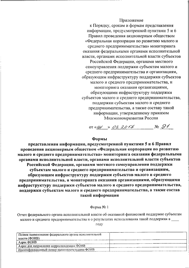 ПРИКАЗ Минэкономразвития РФ от 01.03.2017 N 91