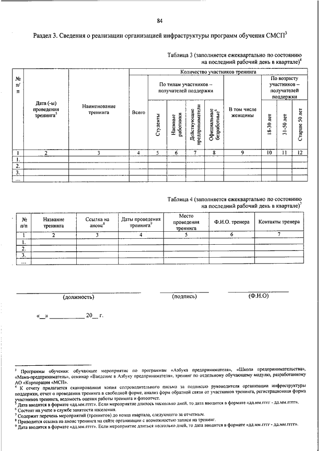 "ОБ УТВЕРЖДЕНИИ ПОРЯДКА, СРОКОВ И ФОРМ ПРЕДСТАВЛЕНИЯ ИНФОРМАЦИИ, ПРЕДУСМОТРЕННОЙ ПУНКТАМИ 5 И 6 ПРАВИЛ ПРОВЕДЕНИЯ АКЦИОНЕРНЫМ ОБЩЕСТВОМ "ФЕДЕРАЛЬНАЯ КОРПОРАЦИЯ ПО РАЗВИТИЮ МАЛОГО И СРЕДНЕГО ПРЕДПРИНИМАТЕЛЬСТВА" МОНИТОРИНГА ОКАЗАНИЯ ФЕДЕРАЛЬНЫМИ ОРГАНАМИ ИСПОЛНИТЕЛЬНОЙ ВЛАСТИ, ОРГАНАМИ ИСПОЛНИТЕЛЬНОЙ ВЛАСТИ СУБЪЕКТОВ РОССИЙСКОЙ ФЕДЕРАЦИИ, ОРГАНАМИ МЕСТНОГО САМОУПРАВЛЕНИЯ ПОДДЕРЖКИ СУБЪЕКТАМ МАЛОГО И СРЕДНЕГО ПРЕДПРИНИМАТЕЛЬСТВА И ОРГАНИЗАЦИЯМ, ОБРАЗУЮЩИМ ИНФРАСТРУКТУРУ ПОДДЕРЖКИ СУБЪЕКТОВ МАЛОГО И СРЕДНЕГО ПРЕДПРИНИМАТЕЛЬСТВА, И МОНИТОРИНГА ОКАЗАНИЯ ОРГАНИЗАЦИЯМИ, ОБРАЗУЮЩИМИ ИНФРАСТРУКТУРУ ПОДДЕРЖКИ СУБЪЕКТОВ МАЛОГО И СРЕДНЕГО ПРЕДПРИНИМАТЕЛЬСТВА, ПОДДЕРЖКИ СУБЪЕКТАМ МАЛОГО И СРЕДНЕГО ПРЕДПРИНИМАТЕЛЬСТВА, А ТАКЖЕ СОСТАВА ТАКОЙ ИНФОРМАЦИИ"